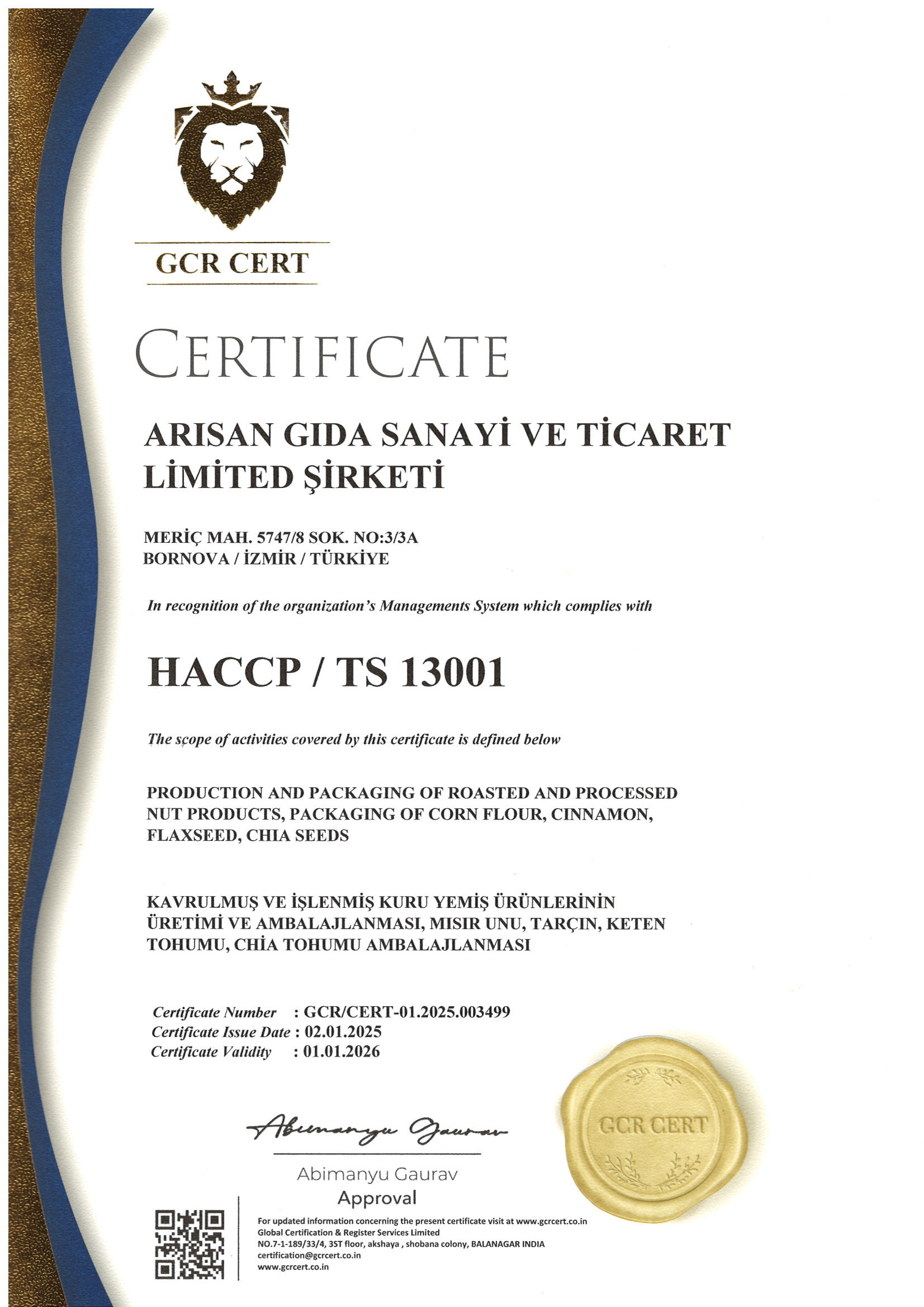 25 yıl önce başladı öykümüz.. Lezzet yolculuğunda kalitesinden ödün vermeden, kuruyemişlerin en doğalını , kuruyemişlerin en tazesini müşterilerimizle buluşturuyoruz. Yerel veya uluslararası kuruyemiş üreticilerinden itina ile seçtiğimiz ürünleri, kuruyemiş üretim tesisimizde tüm mevzuatlara, hijyen kurallarına ve FSSC22000 , ISO 9001, ISO 22000 kalite yönetim sistemlerine göre işliyor; sizlerin tüketimi için özenle kuruyemişlerimizi paketliyoruz.