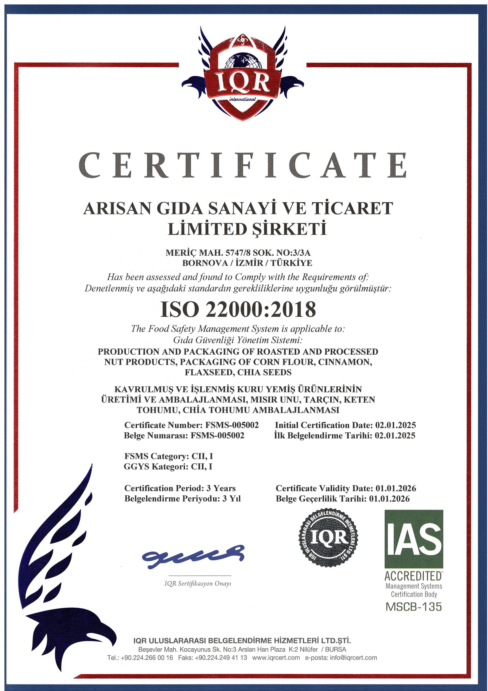 Our story started 25 years ago. We bring the most natural and freshest products to our customers without sacrificing quality in the journey of taste. We process the products that we carefully select from local or international manufacturers in our production facility according to all regulations, hygiene rules and ISO 9001, ISO 22000 quality management systems; We pack it for your consumption.
